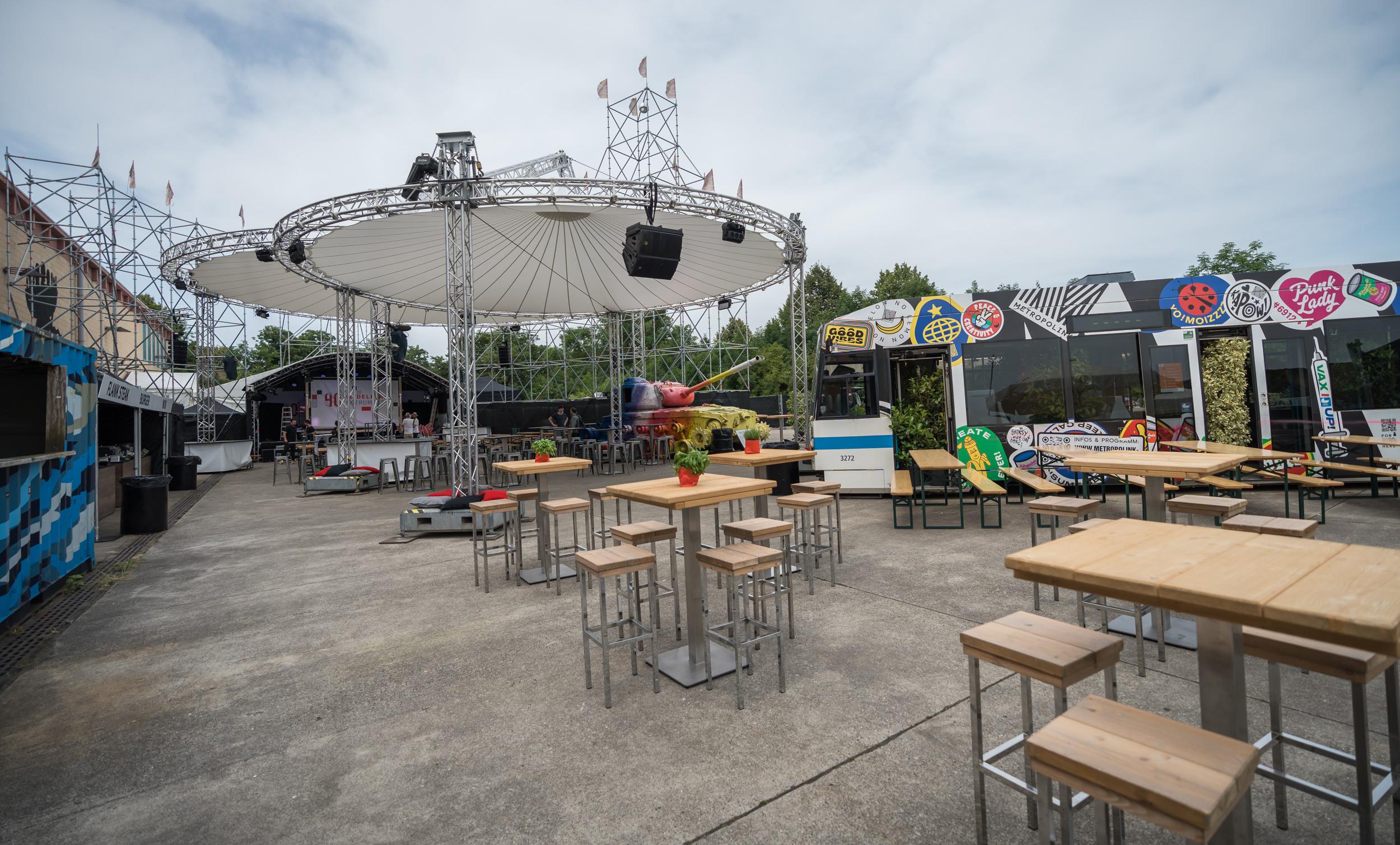 Im Grunde genommen galt es zwei Herausforderungen zu bewältigen: zum einen das extrem unbeständige Wetter der letzten Wochen was dazu führte, dass wir hinsichtlich Planung und Produktion nicht nur einen Plan B in der Tasche haben, sondern auch bis zum Tag der Veranstaltung voll flexibel sein mussten, um auf alle Eventualitäten schnell reagieren zu können.